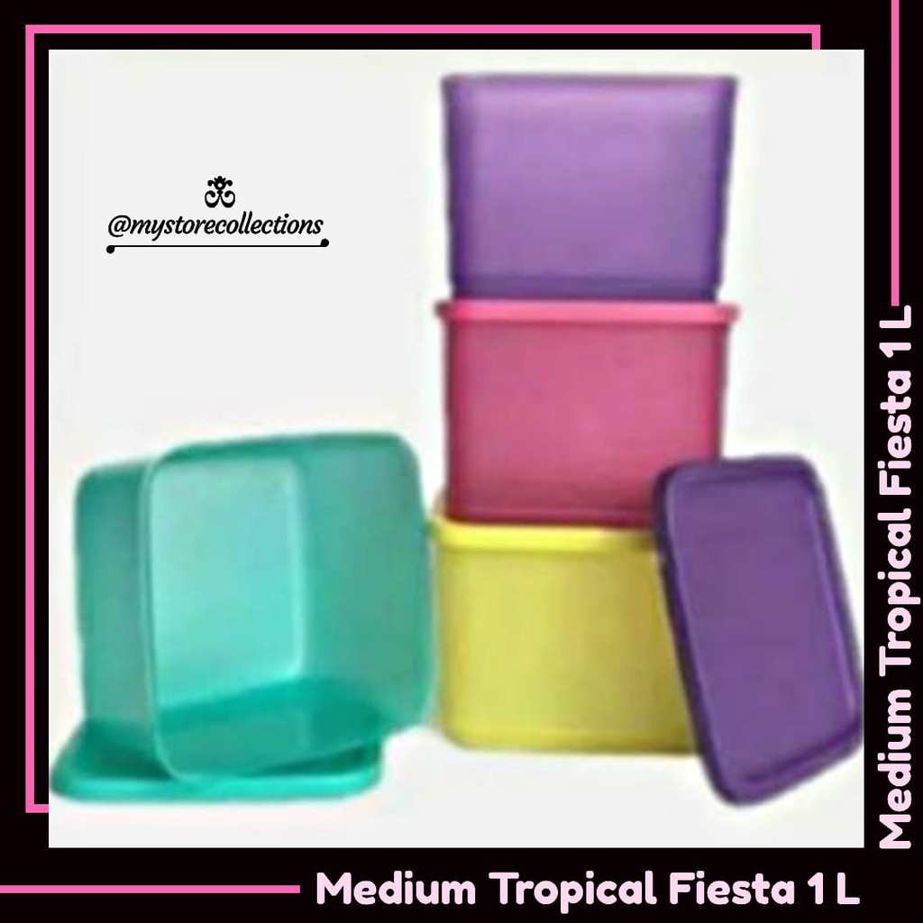 Medium Tropical Fiesta 1 Pcs (satuan) Toples TupwrUkuran : @ 1 L // 12,6 x 12,6 x 9,7 cmMengungkapkan kasih sayang bisa kapan saja dan dimana saja tanpa harus menunggu momen spesial. Koleksi Tropical Fiesta dari Tupperware dengan warna baru ini bisa jadi salah satu pilihan untuk diberikan kepada orang tersayang. Wadah dengan warna ceria yang multifungsi ini bisa menyimpan berbagai snack/cemilan, makanan, dan aksesoris. Bukan hanya itu, Tropical Fiesta juga memiliki box cantik yang dilengkapi dengan ucapan yang bisa Anda tuliskan sendiri pesannya di box, sehingga Anda tidak perlu repot untuk membeli kartu tambahan. Praktis kan? Tropical Fiesta memiliki berbagai keistimewaan yaitu:•Sealnya ketat terhadap udara, untuk mempertahankan makanan lebih awet•Pada seal terdapat tab yang memudahkan saat membuka wadah.•Bentuk wadah cekung pada bagian sudut base sehingga mudah saat mengambil makanan yang tersisa dan dibersihkan.•ukuran wadah yang berbeda untuk menyimpan makanan sesuai dengan kebutuhannya•Wadahnya stackable sehingga kokoh disusun bertumpuk dan lebih hemat tempat saat disimpan.•Dapat disusun secara modular/rata, sehingga lebih cantik dijadikan tempat camilan pada meja tamu/keluargaNB: MOHON TANYAKAN KETERSEDIAAN BARANG TERLEBIH D