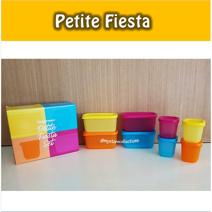 Petite Fiesta Set Kegunaan:Wadah imut serbaguna untuk memenuhi kebutuhan penyimpanan kecil.Ukuran:Terdiri dari:a. Mini Rectangular Low (4)@850 ml / 18.5 x 14 x 6.2 cmb. Mini Rectangular High (4)@2 L / 18.5 x 14 x 11.7 cmc. Box Ada kalanya kita ingin membawa makanan atau barang dengan jumlah yang sedikit namun wadah yang dimiliki terlalu besar sehingga memenuhi isi tas. Jangan khawatir, ada yang baru dari geng petite, yaitu Petite Fiesta! Kecil-kecil cabe rawit, jasanya selangit! Petite Fiesta menghadirkan wadah imut warna-warni yang menyesuaikan kebutuhan penyimpanan kamu, praktis dibawa ke mana aja atau disimpan di rumah!Fitur Petite Fiesta : 1.Seal/Tutupnya ketat udara sehingga apapun di dalamnya lezat saat disimpan.2.Terdapat tab pada seal/tutupnya yang akan memudahkan membuka.3.Stacking, tidak mudah jatuh saat ditumpuk ke atas sehingga lebih hemat tempat penyimpanan.4.Bagian bawah base nya melengkung jadi lebih mudah saat dibersihkan.Tidak hanya untuk menempatkan camilan lho, kamu juga bisa menyimpan barang-barang kecil yang berharga seperti flashdisk, earphone, atau benda kecil lainnya agar tidak tercecer.NB : MOHON TANYAKAN KETERSEDIAAN BARANG TERLEBIH DAH
