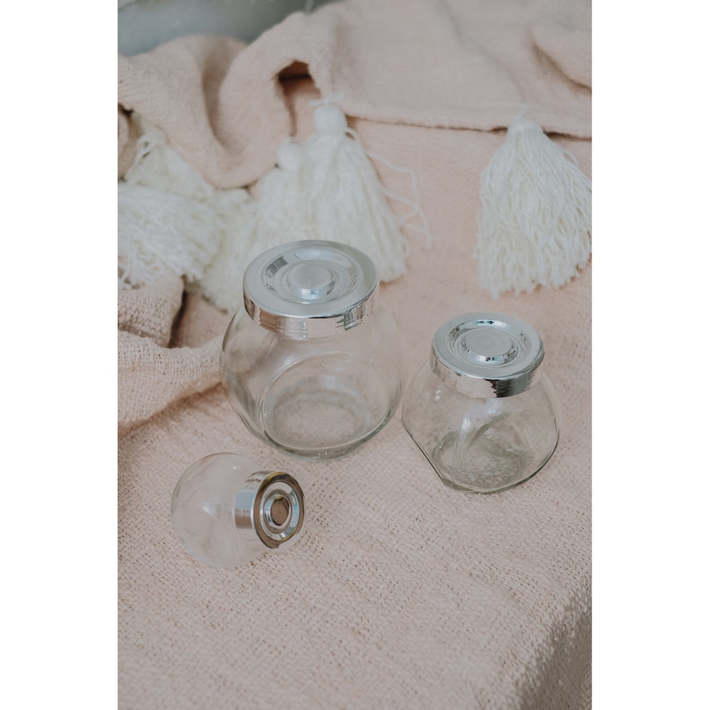 Toples jarS : Rp. 11000M : Rp. 16.000L : Rp. 20.000Fitur Utama- Jar transparan memudahkan menemukan apa yang anda cari, dimanapun diletakkan.- Tanpa tambahan BPA (Bisphenol A).- Bahan dalam produk ini dapat didaur ulang.Cara merawatBagian kaca aman untuk mesin cuci piring. Penutup harus dicuci tangan.BahanKaca, Plastik poliprop
