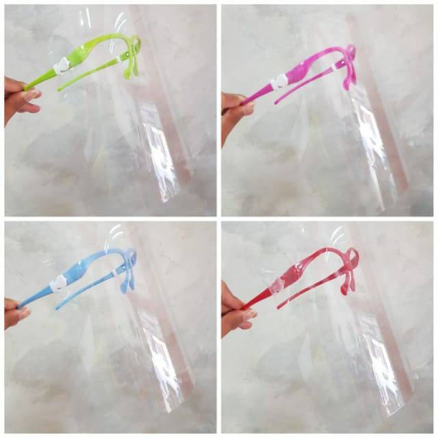 Shield Size: 18 x 24cmWeight: 40gPackage List:1 x Protective Face M,Frame Color transparencyFece Shield terbaruModel kacamata.Ada 4 warna yaa kak.Warna nya sudah ada langsung di foto yaa