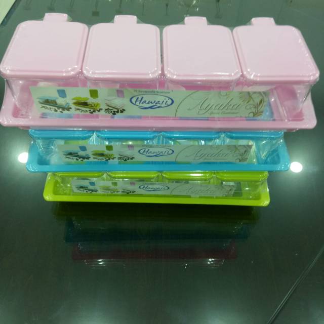 Tempat bumbu ayaka hawaii Terdiri dari 3 jenis :1.2 set2. 3 set3. 4 setTerdiri dari 3 warna :1. Pink soft2. Hijau3. BiruWarna di kirim random tapi kalau sesuai request ada barang akan kami kirim sesuai requestHappy shopp