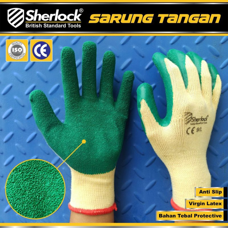 Distributor Perlengkapan di Kota Serang Sherlock Sarung Tangan Proyek Latex Anti Slip 310 Safety Gloves Sherlock Uk. L dari Ar Gemilang Kota Malang